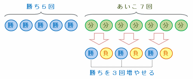 ・勝ち5回+あいこ7回