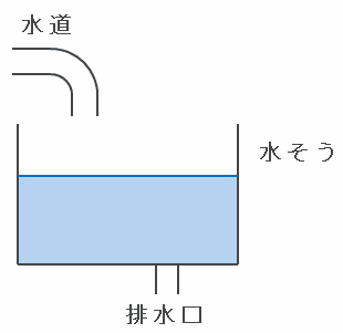 ・水道から水そうの中に入る水の量は毎分10リットルである。