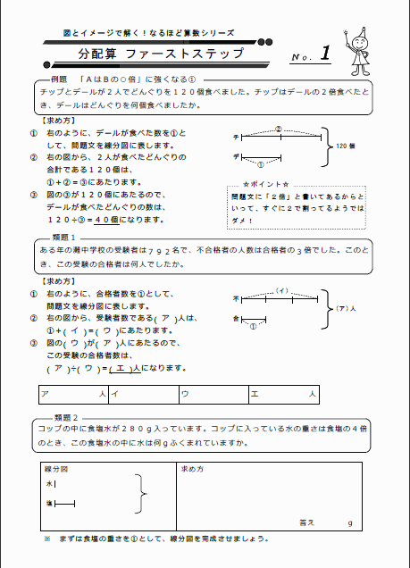 ※ 「和差算・分配算ファーストステップ」は、記事番号7と8にあります。
