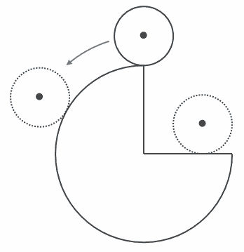 したがって、円の中心が動いてできる線の長さは全部で37.68+6.28+8=51.96㎝になります。