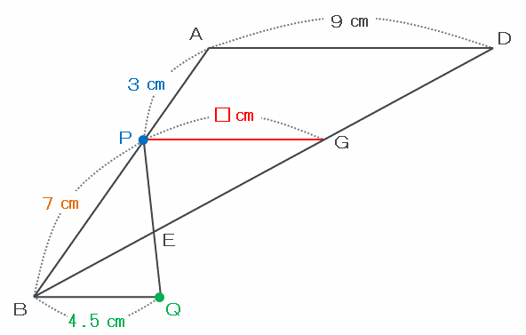 したがって、辺PGの長さは7×9÷10=6.3㎝になります。