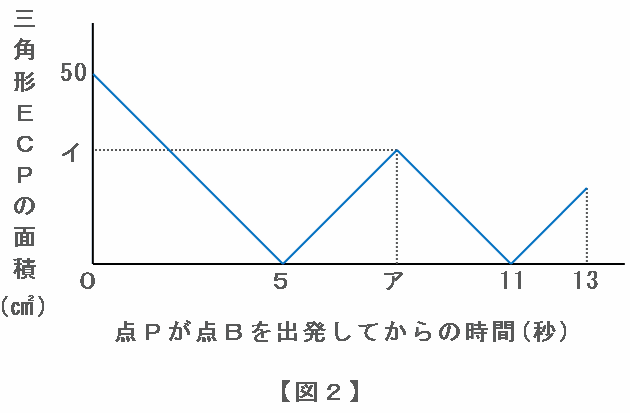 図2のグラフは、2つの図形が重なり始めてからの時間と、重なった部分の面積の関係を表したものです。この図のように、4、10、12、14秒後のそれぞれの時間で、グラフの角度が変化していきます。次の問いに答えなさい。