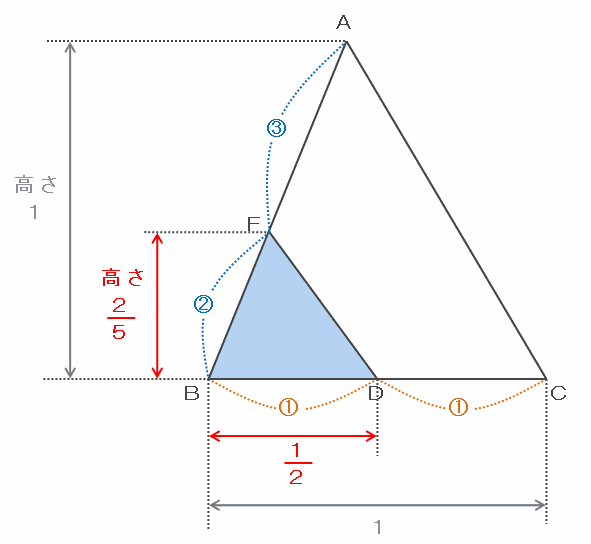 ・三角形FBDの高さ→AF:FB=3:2なので、ABCの高さの5分の2