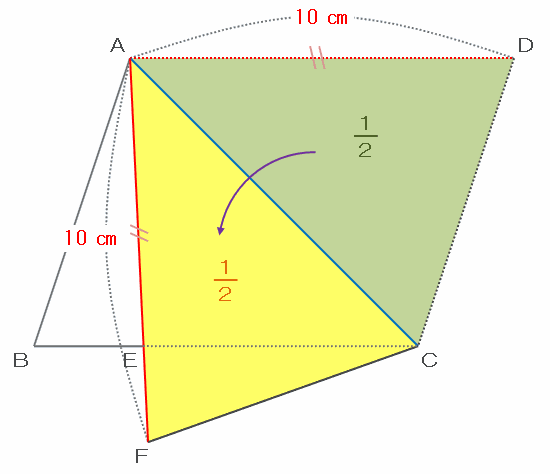 また、三角形ACDを対角線ACで折ってできるのが三角形ACFなので、