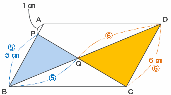 また、BQとQDの長さの比もPB:DCと等しいので5:6になります。
