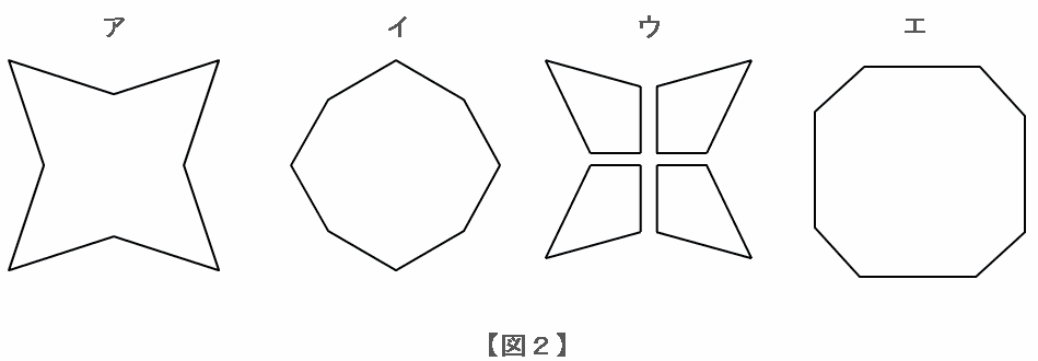 このときにできた緑色の手裏剣みたいな形にもっとも近い選択肢はアになります。