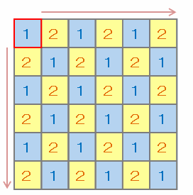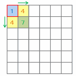 つまり、いちばん左上のマスを「1」とした場合、次の図のように、