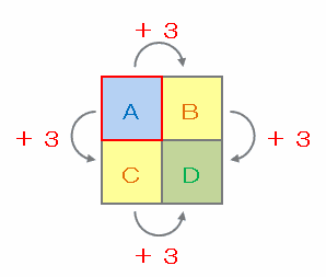 ・BとCのマス→Aよりも3大きい数をあてはめる
