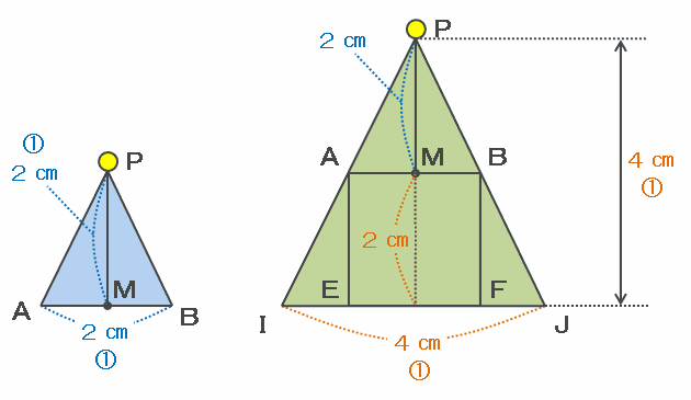 ※ 三角形PIJは三角形PABと相似なので、底辺と高さが等しい。