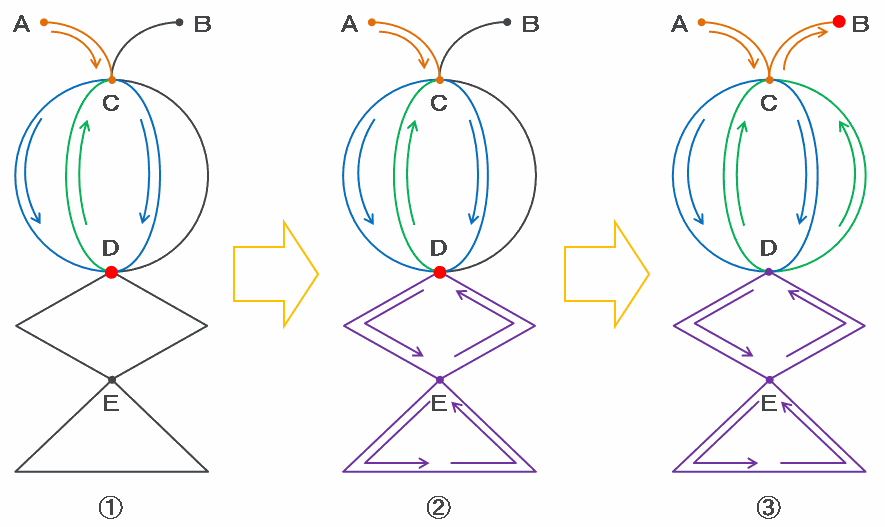 たとえば次の図のように、まずはAからCへ進んだ後、