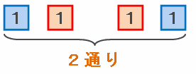 したがって、「1と1」のように同じ数をかけ合わせる場合の組み合わせは、色の使い方によって2通りできます。