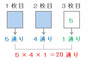 ・3枚目→2枚目で使わなかった中から1枚をあてはめるので3通り