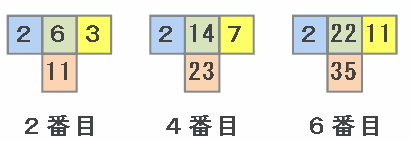 ブロックの下段にある数だけを奇数番目と偶数番目に分けて並べてみると、
