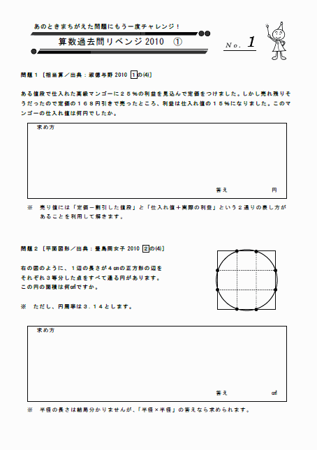 ※ 「算数過去問リベンジ2010 パート①」は、記事番号17と18にあります。