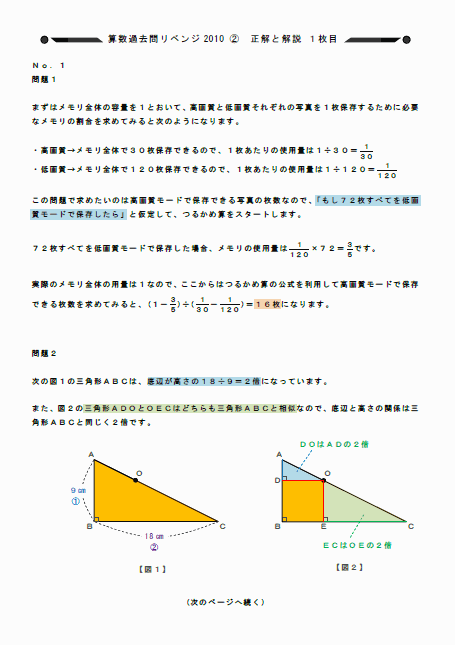 ※ 「算数過去問リベンジ2010 パート2」は、記事番号19と20にあります。
