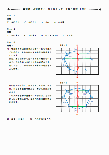 ※ 「線対称・点対称ファーストステップ」は、記事番号35と36にあります。