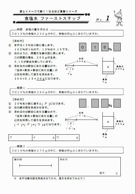 食塩水の初心者向けプリント「食塩水ファーストステップ」を無料でダウンロードしてご使用いただけます。