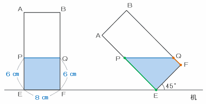 傾ける前は水の高さが6㎝なので、PEとQFの長さは合わせて6×2=12㎝です。