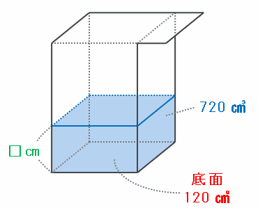 容器の底面積は120㎠なので、液面の高さは720÷120=6㎝になります。