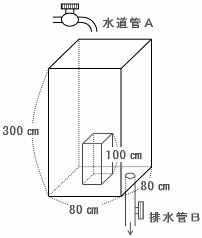 (2) 排水管Bから出てゆく水の量は毎分何リットルか求めなさい。