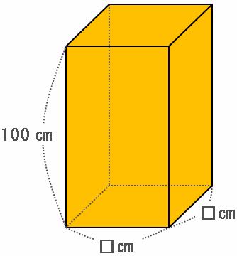 □×□の答えは40000÷100=400、400=20×20なので、小さな直方体の底面の一辺は20㎝になります。