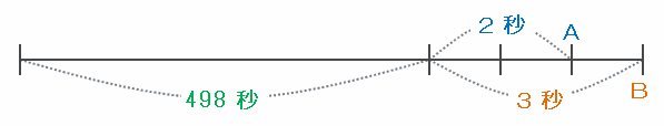 ・498秒から3秒後にBさんがおもりを1個沈める