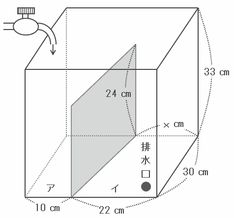 (2) 排水管Bから出てゆく水の量は毎分何リットルか求めなさい。