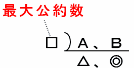 A=△×□、B=◎×□のそれぞれの□に最大公約数である13をあてはめると、A=△×13、B=◎×13となります。