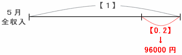 上の図から、5月の全収入は96000÷【0.2】=480000円になります。