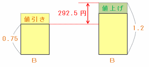 つまり、1410-1117.5=292.5円の差は、次の図のBが「定価の0.75」なのか「定価の1.2」なのかによって生じていることが分かります。