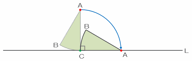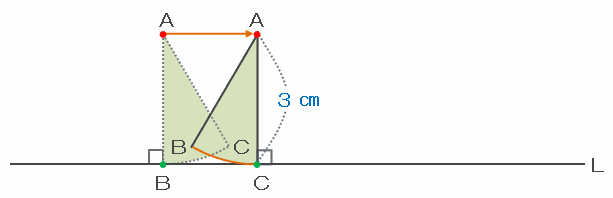 ただし、このときは頂点Aを中心として回転しているので、Aが動いた長さはゼロです。