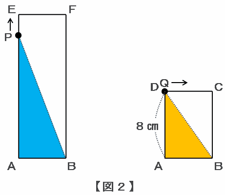 2つの点が出発してから8秒後、点Qは頂点Dに到着したため、三角形ABQの面積は次の図2のように最大になりました。