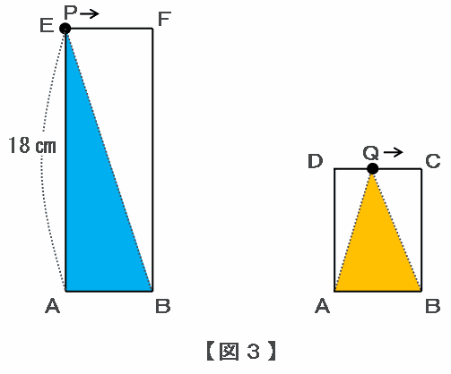 点Pが進んだ距離→辺AE+辺EF+辺FBだから、18×2=36㎝と辺EF