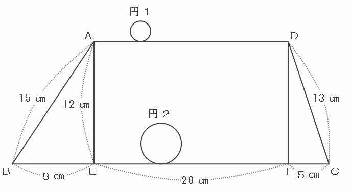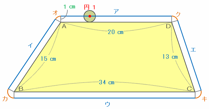 半径1㎝の円1が次の図のように台形ABCDのまわりを1周したとき、円の中心が動いてできた線は
