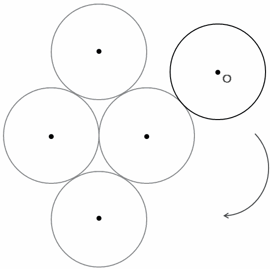 下の図のように、半径6㎝の4個の円がくっついています。これらの円にそって、その周りを同じ半径の円が1周するとき、その円の中心Oが動いたあとの線の長さを求めなさい。ただし、円周率は3.14とします。