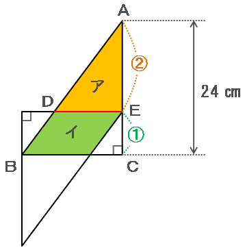 ※ アの面積→DE×②÷2=DE×① イの面積→DE×①