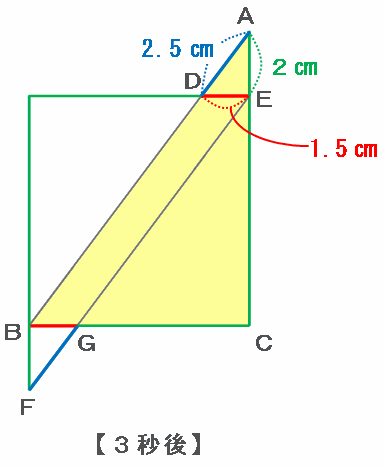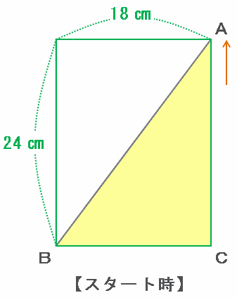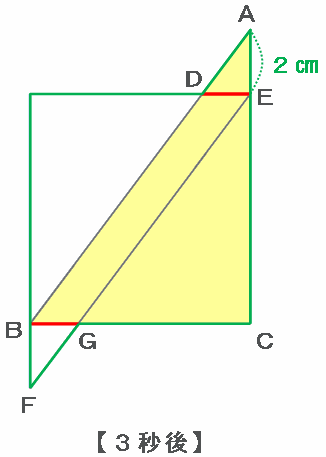 この後、三角形ABCは真上へ向けて3秒間に2㎝の割合で進んでいきます。