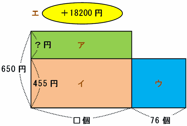 ウの部分は455×76=34580円なので、ア+エの答えも34580円です。