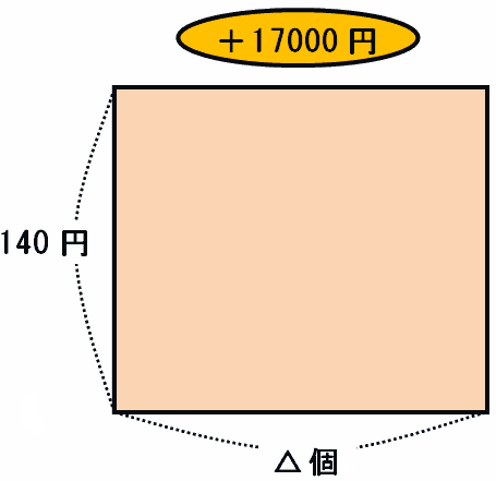 つまり、20円×△個は22800-17000=5800円なので、△個は5800÷20=290個だと分かります。