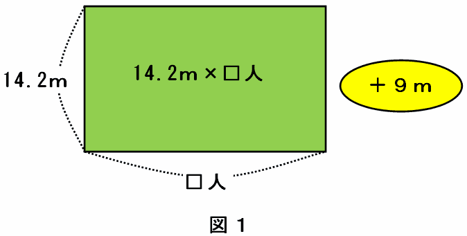 クラスの女子の人数を□人とおくと、上の面積図の緑色の部分は「14.2m×□人」で求められます。