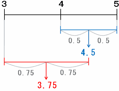 2回目→残しておいた「3」との平均は、(3+4.5)÷2=3.75になります。