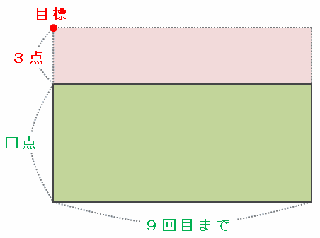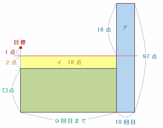 ※ 長方形イのたては「2点」、横は「1~9回目まで」なので、得点は2×9=18点となる。