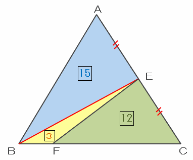 また、三角形EBFの面積は比の3なので、EFCの面積は比の15-3=12と表せます。