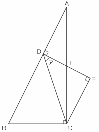 次の図のように、点Cから辺ABに向けて垂線を引き、ABとの交点をGとすると、三角形DGCはCEDと合同な直角二等辺三角形になります。