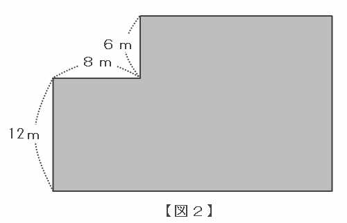 この土地を次の図のように真上から見ると、影をつけた部分の面積は、たて6+12=18mで横8+16=24mの長方形の面積から、建物の面積を引けば求められることが分かります。