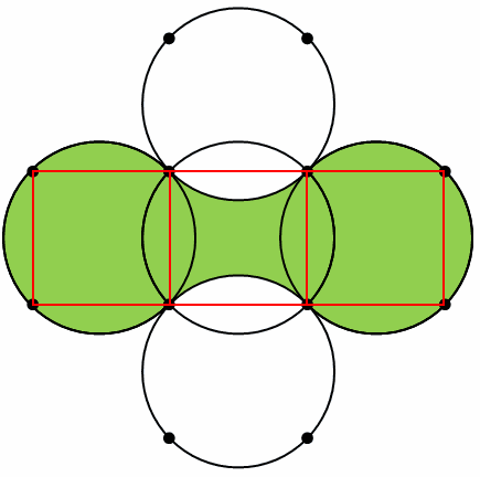 (赤い正方形3つの面積)+(円1つの面積-赤い正方形1つの面積)=(赤い正方形2つの面積+円1つの面積)