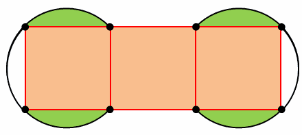 すると求めたい面積は、次の図の赤い正方形3つと緑色の部分4か所になりました。