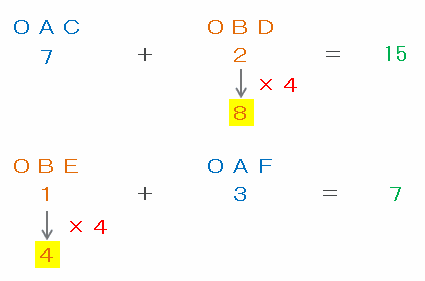 ・三角形OAC+OBD=7+8=15