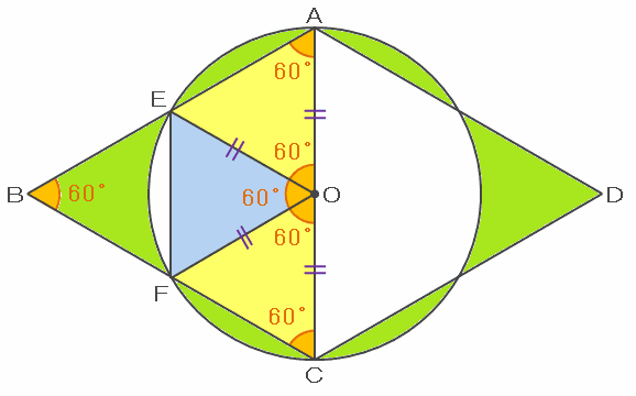 つまり、下の図の三角形OEAとOFCとOEFはどれも合同な正三角形になっています。