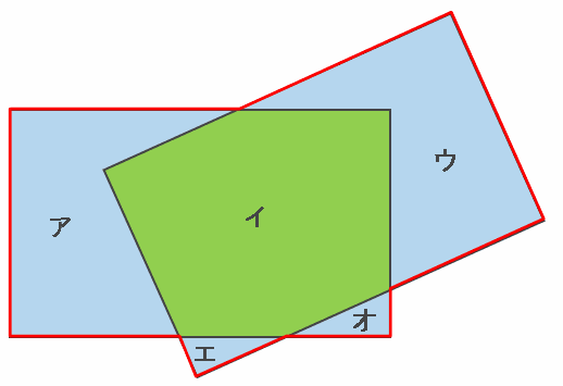 次の図のように、2つの長方形が重なってできた5か所をそれぞれア~オとすると、